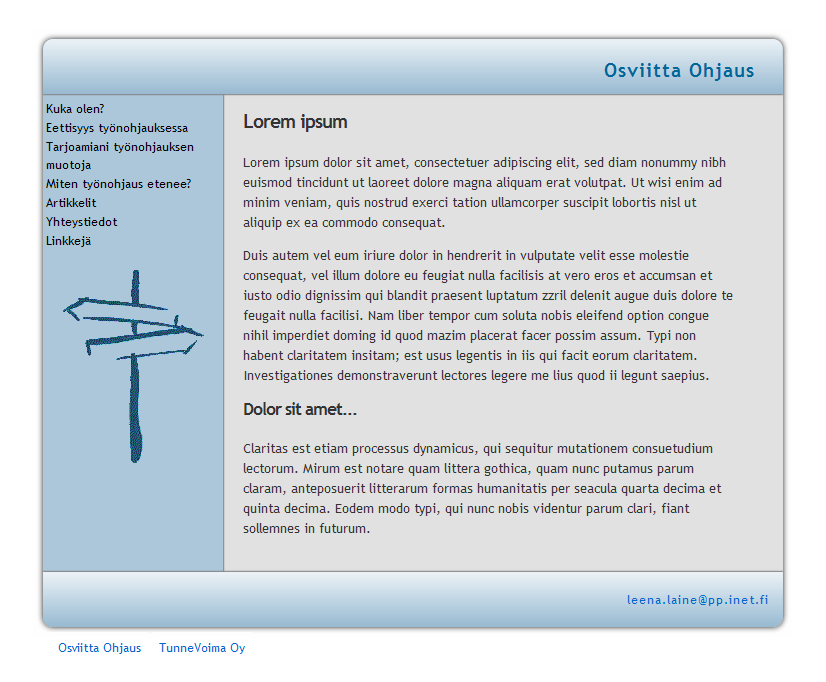 Nettisivut työnohjaaja Leena Laineelle. Näitä sivuja olen päivittänyt aina silloin tällöin. Ensimmäinen Osviitta Ohjaus julkaistiin joskus vuonna 2003. Uusi domain www.leenalaine.net astui voimaan huhtikuussa 2005.