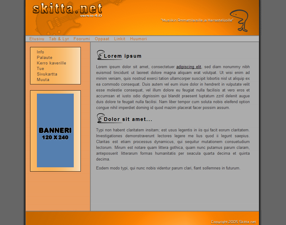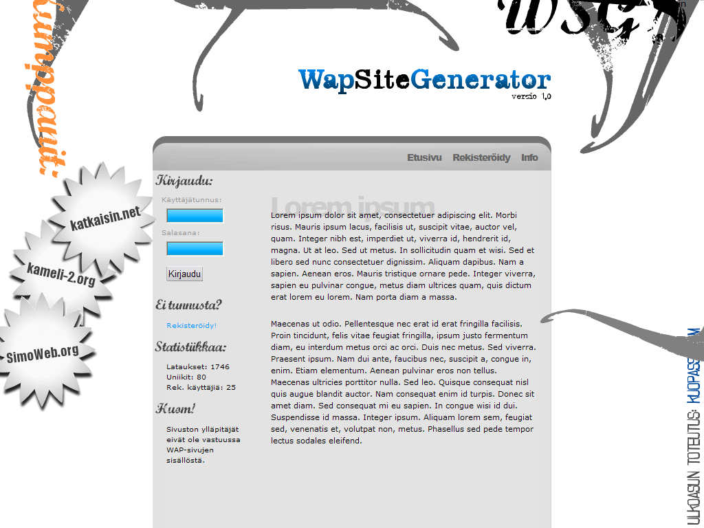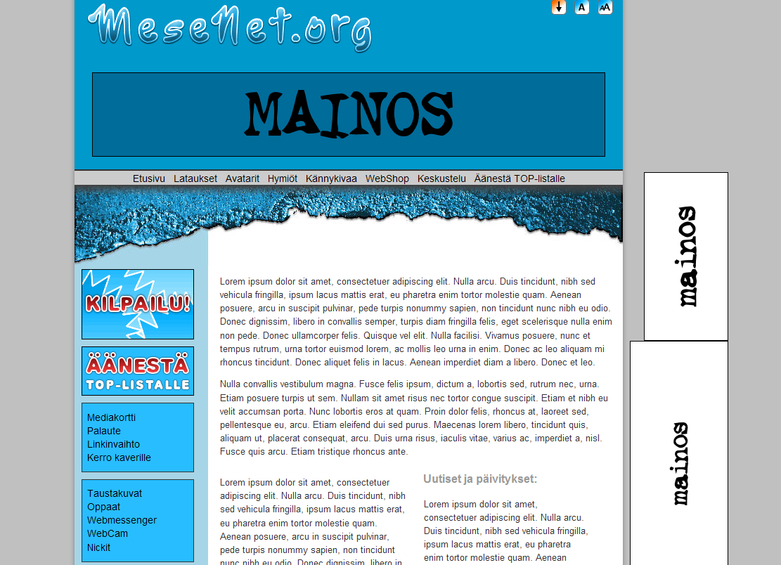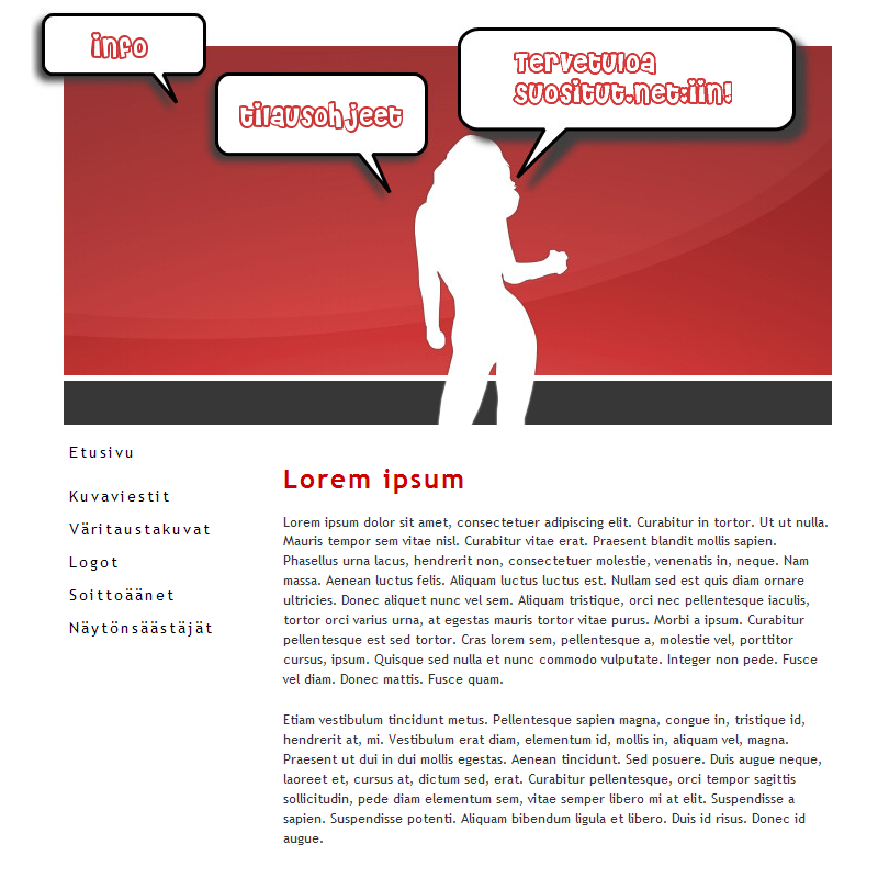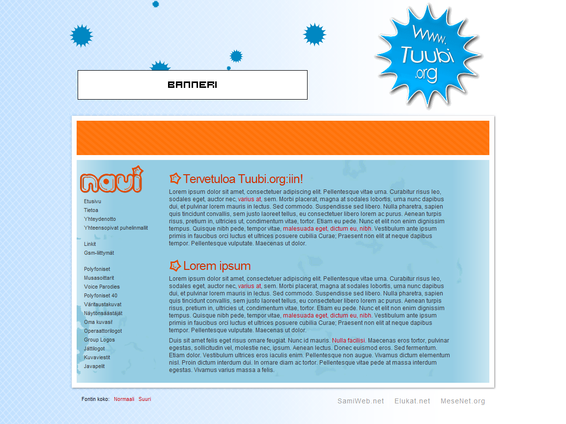24.07.2005 julkaistiin uusi kännykkäpalveluja tarjoava nettisivusto, joka käyttää tekemääni ulkoasua. Sivustolta Tuubi.org voi tilata kännykkään mm. soittoääniä, logoja ja Java-pelejä.