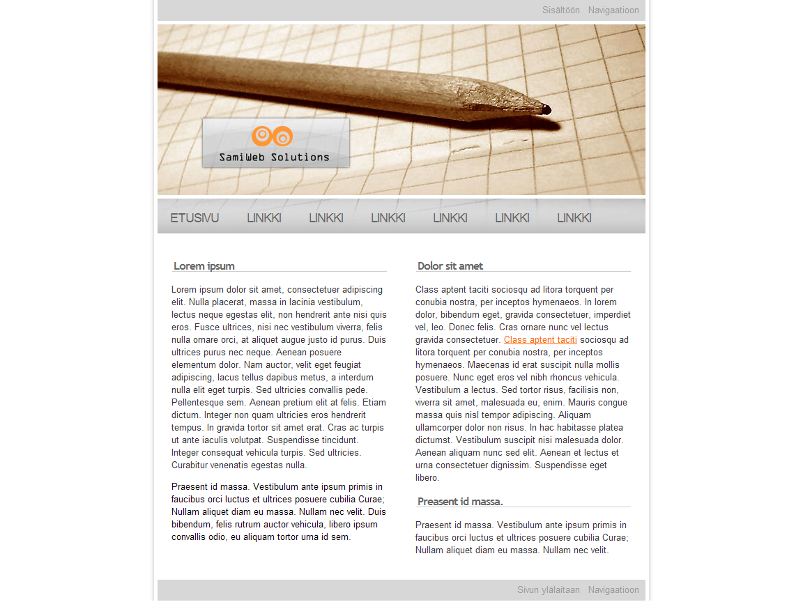 SamiWeb Solutions on nuori yritys, joka tarjoaa erilaisia Web-palveluita. Sain suunnitella ja rakentaa SW Solutionsin webbisivujen ulkoasun, joka valmistui syyskuussa 2005. Tälle firmalle tein samalla oman logon.